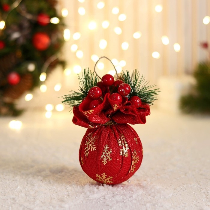 Шар пластик декор "Блеск рождества" снежинки, 8х12 см, красный