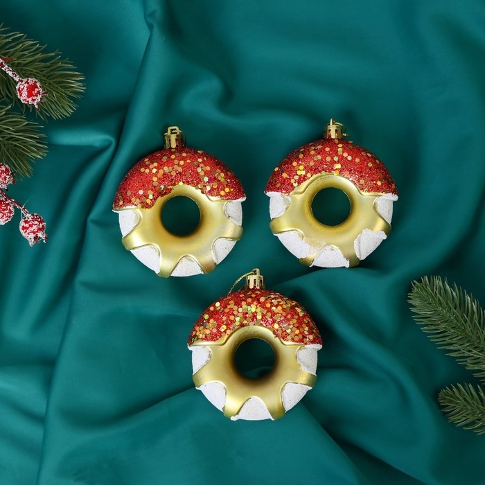 Украшение ёлочное "Пончик праздничный" (набор 3 шт) 7х8 см, микс