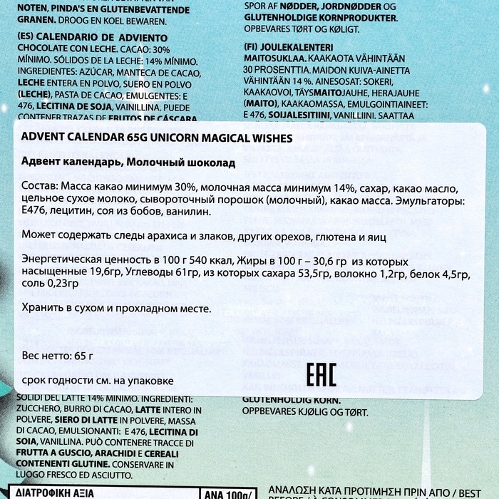 Новый год. Адвент-календарь ChokoTime " Волшебные пожелания единорога", 65 г