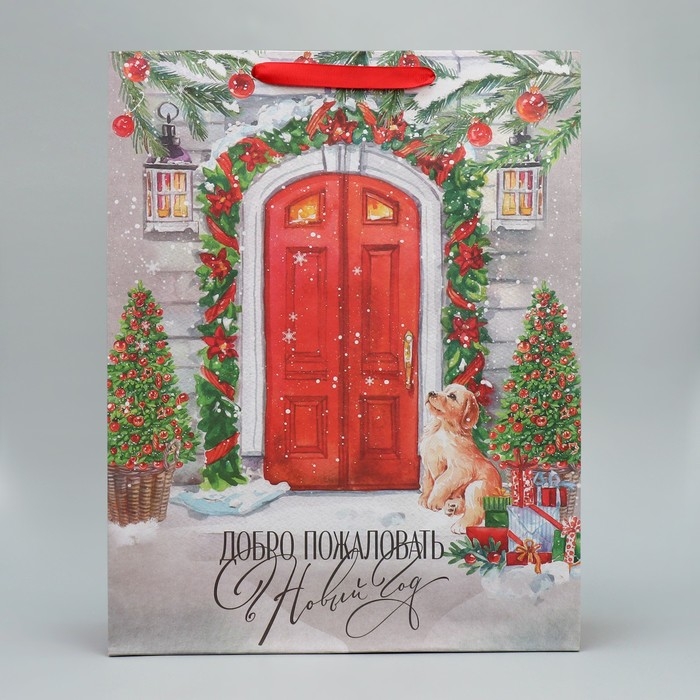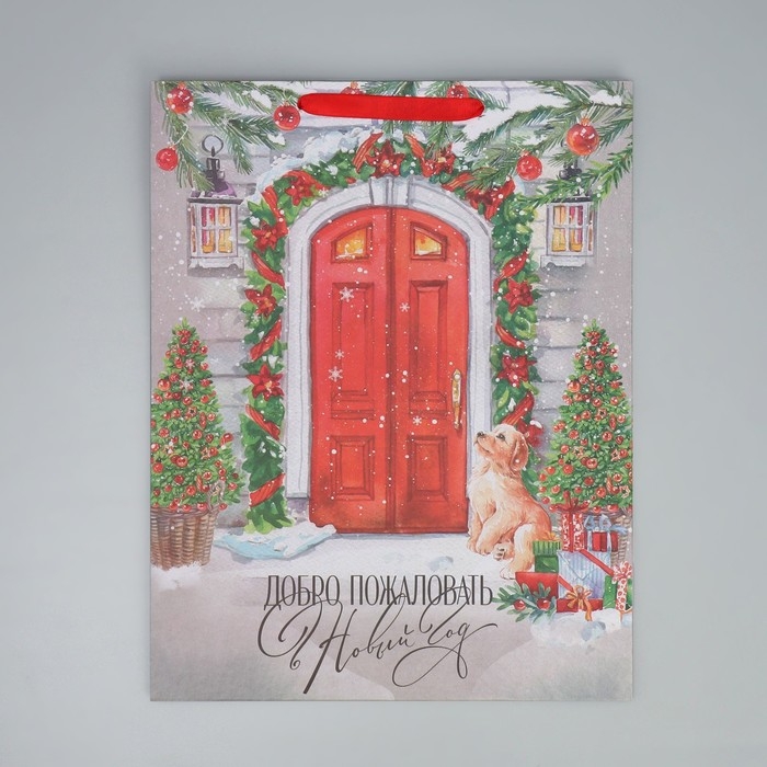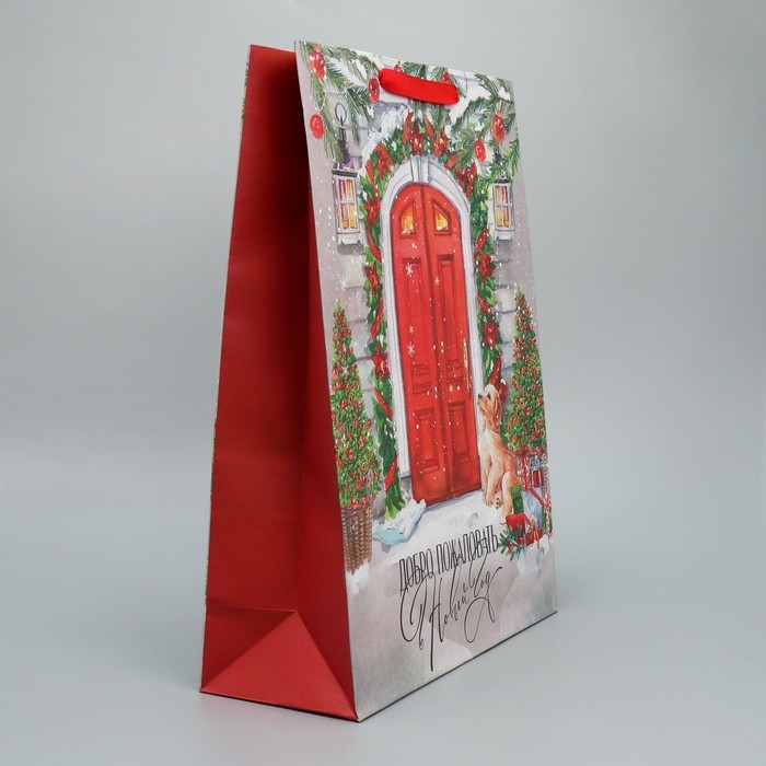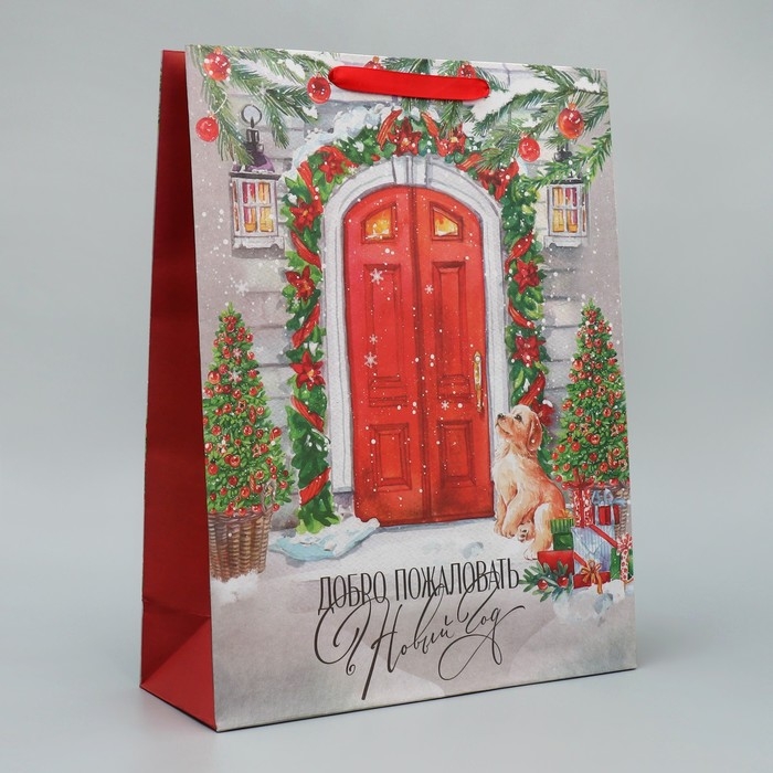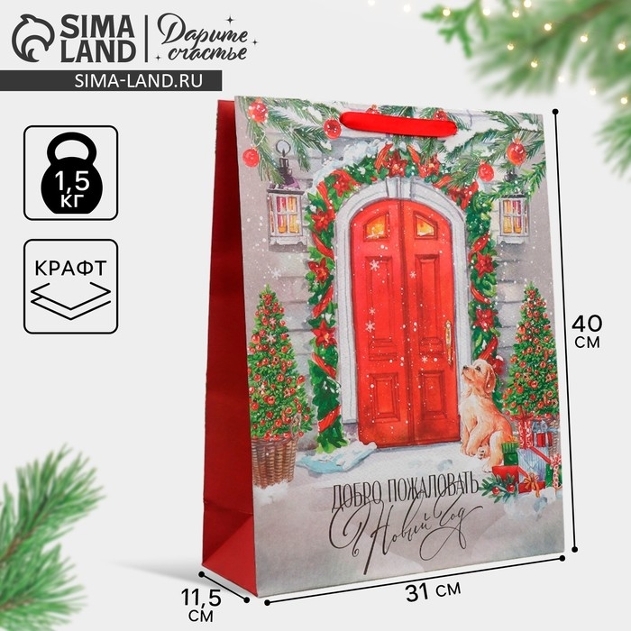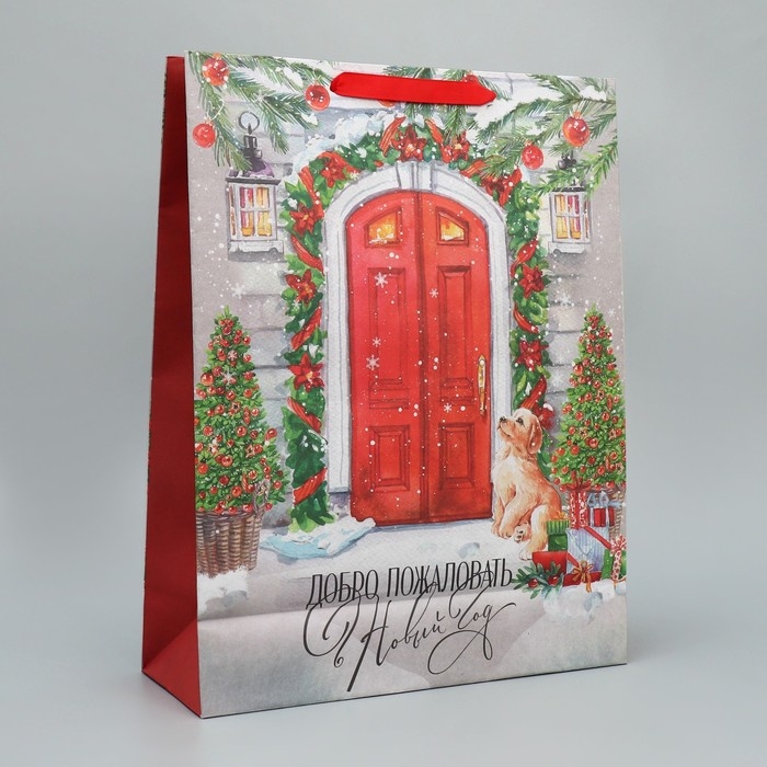 Пакет подарочный новогодний крафтовый вертикальный «Новогодний дом», L 31 х 40 х 11.5 см, Новый год