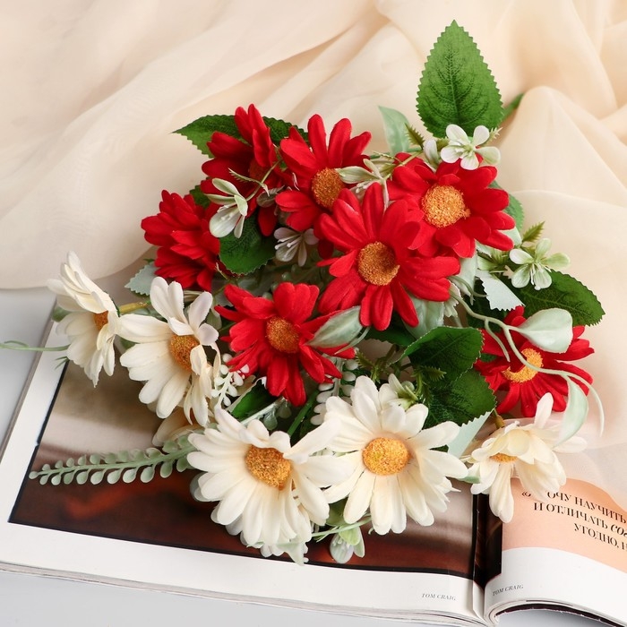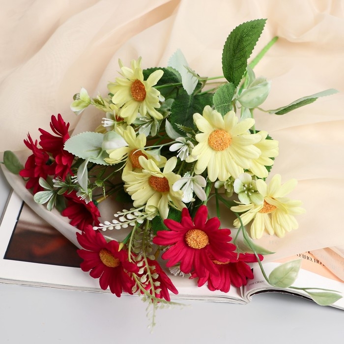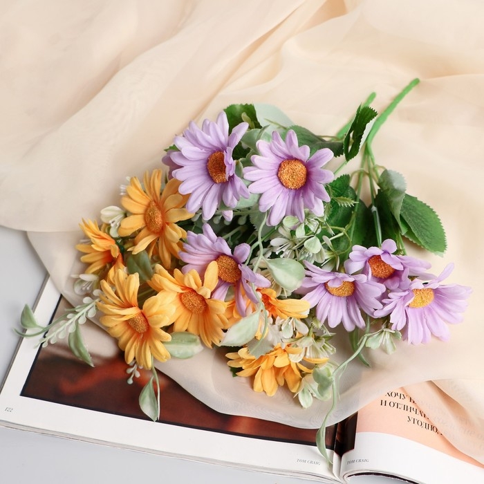 Букет "Подсолнухи мини с зеленью" 5х26 см, микс