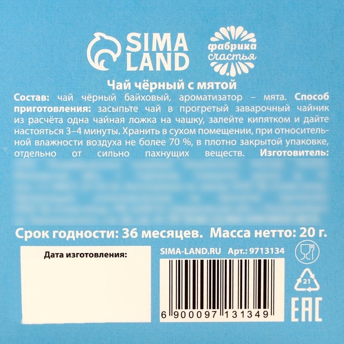 Состав: чай чёрный байховый, ароматизатор - мята.