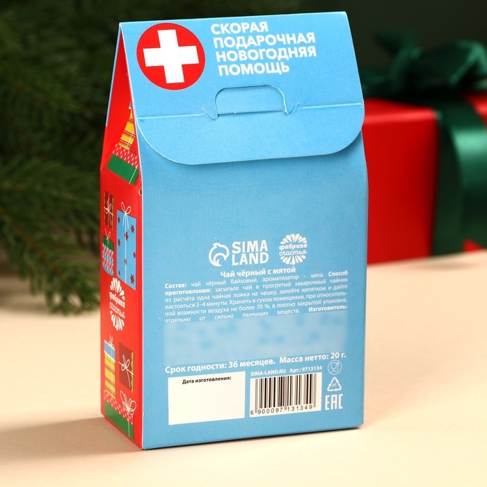Новый год! Чай чёрный «Поздравин ультра», вкус: мята, 20 г.