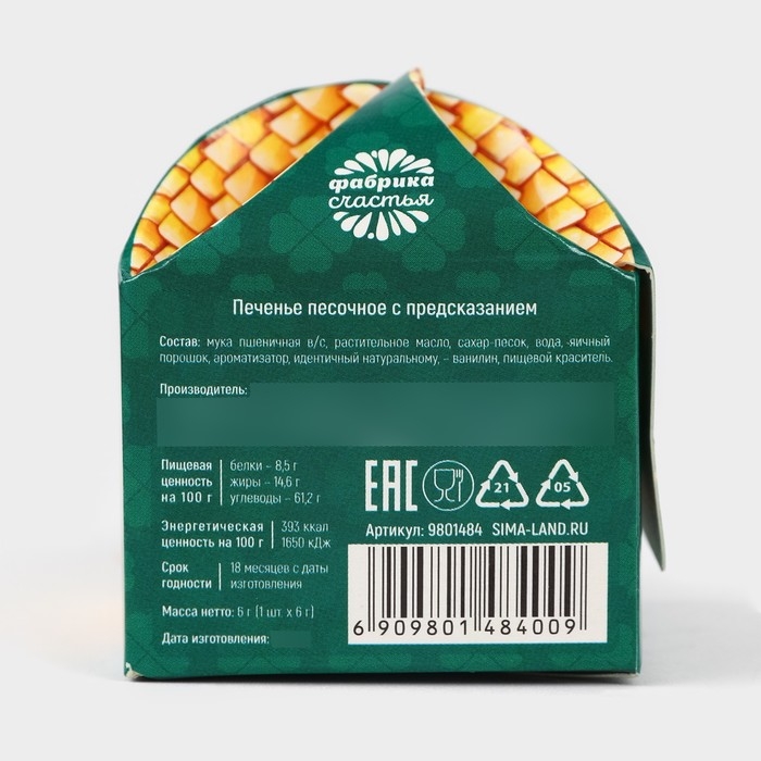 Печенье песочное с предсказаниями "Стандарт", 12 шт., 84 г
