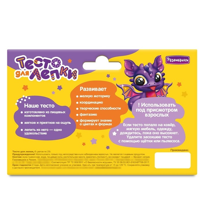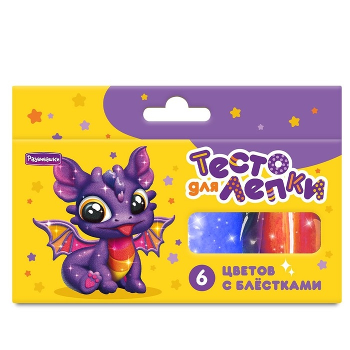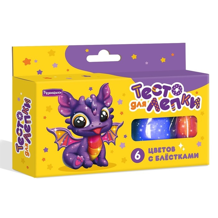 Тесто для лепки, в коробке 6 цветов по 25 г, с блёстками