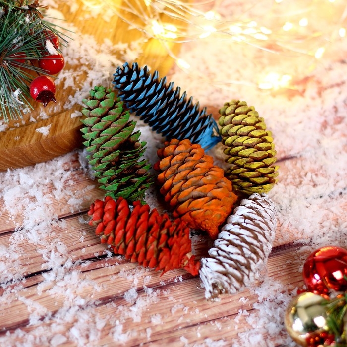 Набор еловых шишек для декора «Цветные» 6 шт., МИКС