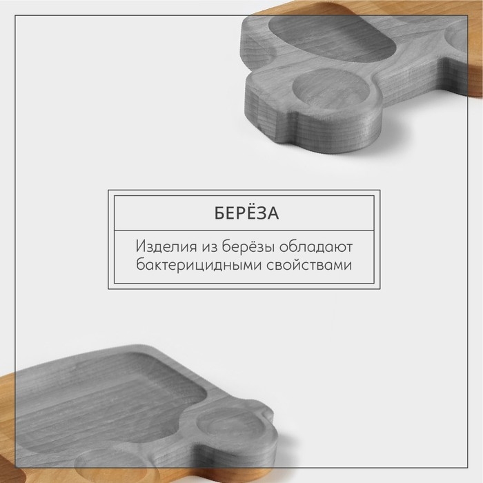 Менажница изготовлена из экологически чистого дерева – берёзы. Каждая менажница имеет свой рисунок, форму и красивый переливающийся оттенок, что способствует развитию эстетического восприятия у ребёнка. Менажница может быть использована для подачи блюд (как детская деревянная тарелка), сервировки стола, а также для повседневного хранения орешков, крекера, сыра, оливок, сладостей и фруктов. Менажница будет отличным подарком для мамы и ребенка, и украсит стол на детском празднике.Правила ухода