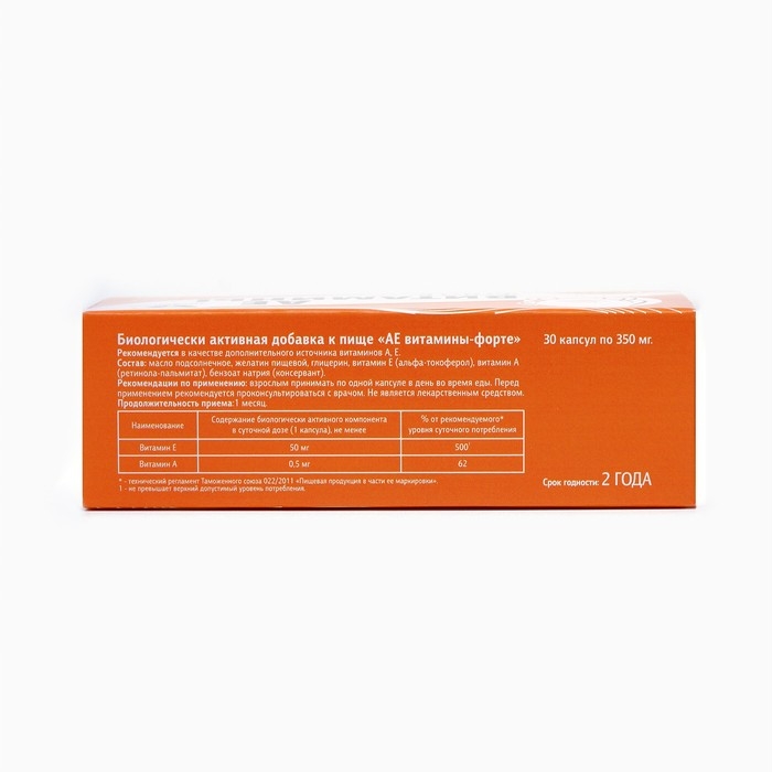АЕ витамины - форте. Рекомендуется в качестве дополнительного источника витаминов А, Е. Витамин Е предотвращает образование кровяных сгустков и способствует их рассасыванию.