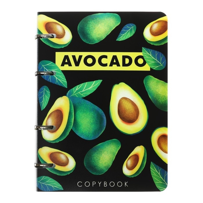 Тетрадь на кольцах A5 160 листов в клетку Calligrata "Авокадо на тёмном", пластиковая обложка, блок офсет