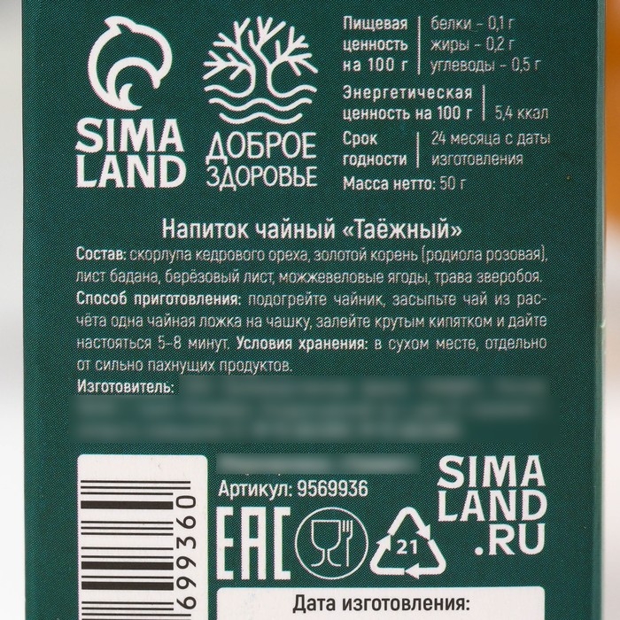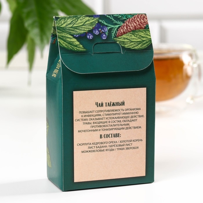 Состав: скорлупа кедрового ореха, золотой корень (радиола розовая), лист бадана, берёзовый лист, можжевеловые ягоды, трава зверобоя.