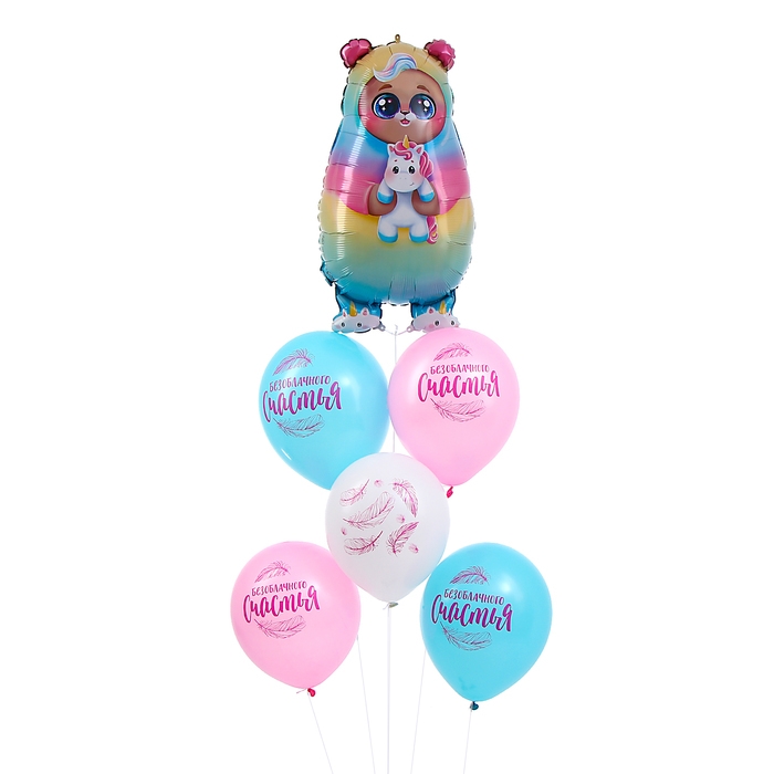 Набор воздушных шаров «С днём рождения, мишка-единорог», латекс, фольга, 6 шт.