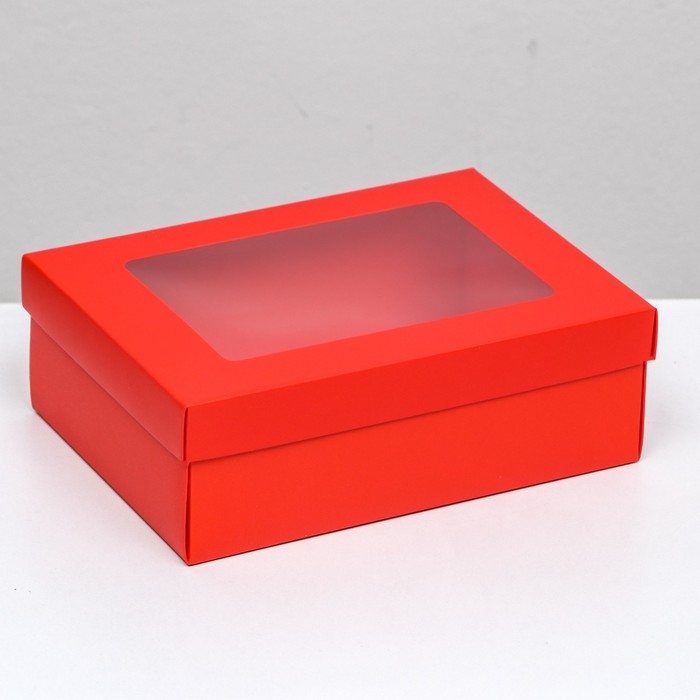 Коробка подарочная складная, упаковка, «Красная», с окном, 21 х 15 х 7 см