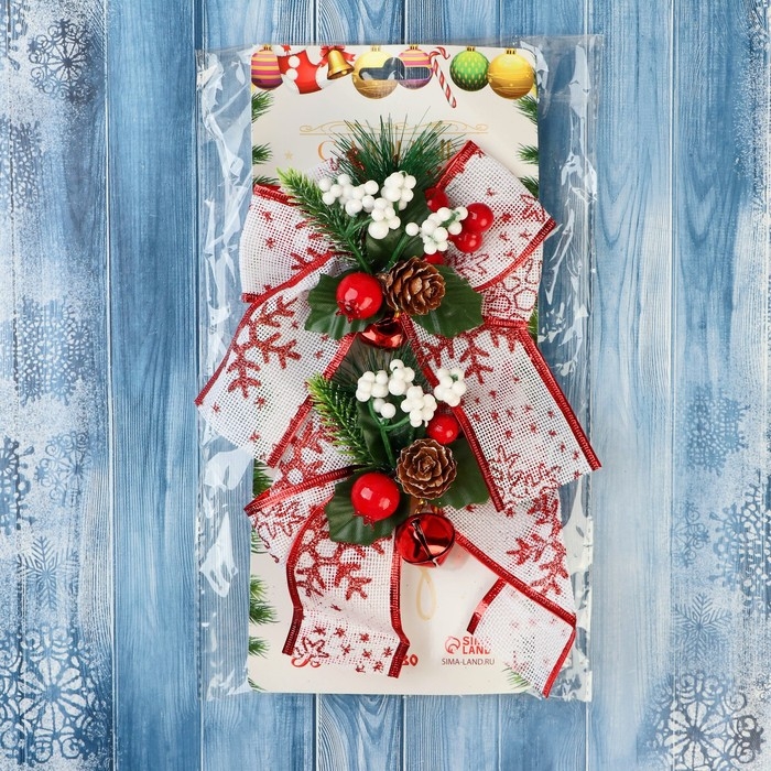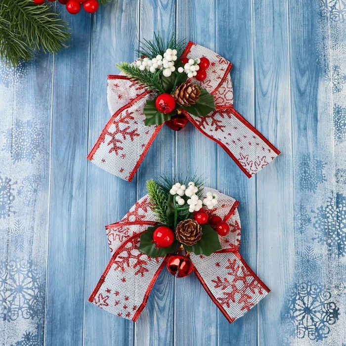 Украшение ёлочное "Еловая композиция" (набор 2 шт) бант с принтом, 13х12 см, бело-красный