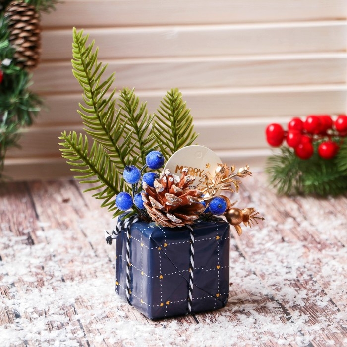 Украшение ёлочное "Новогодний подарок" 9х11 см, синий