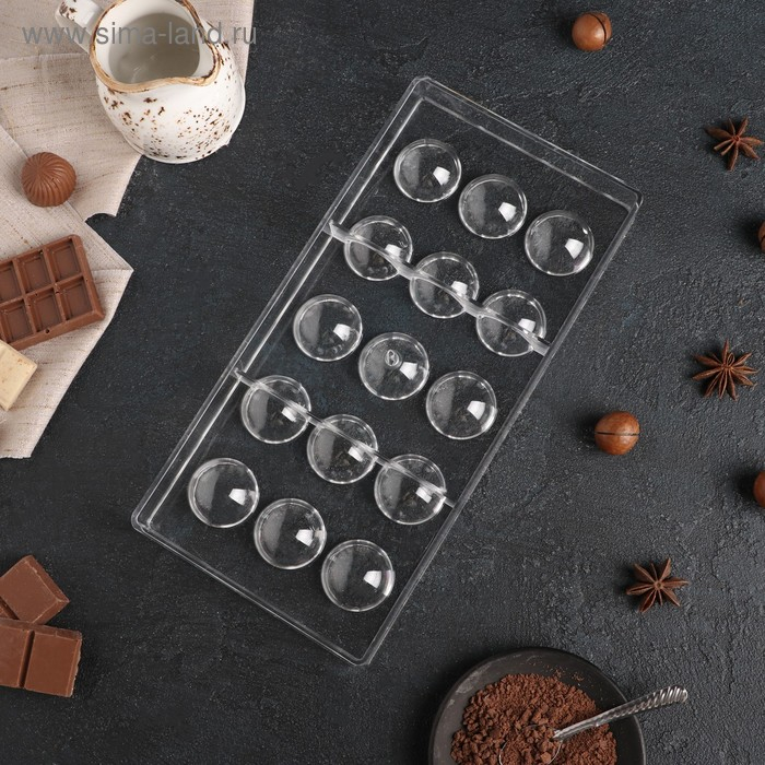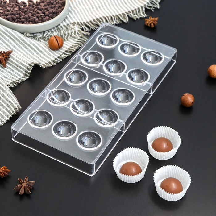 Форма для конфет и шоколада KONFINETTA «Полусфера», 28×14 см, 15 ячеек, цвет прозрачный