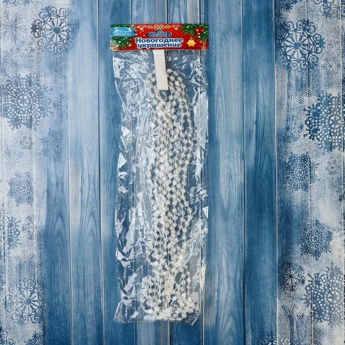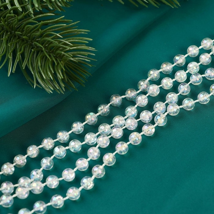 Бусы на ёлку 2,7 м d-5 мм "Льдинка" классика, прозрачный перламутр