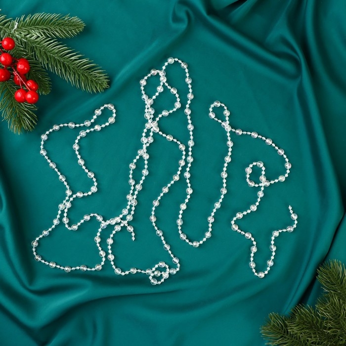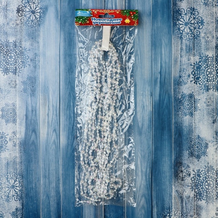 Бусы на ёлку 2,7 м d-7 мм "Льдинка" гранёные бусины, прозрачный перламутр