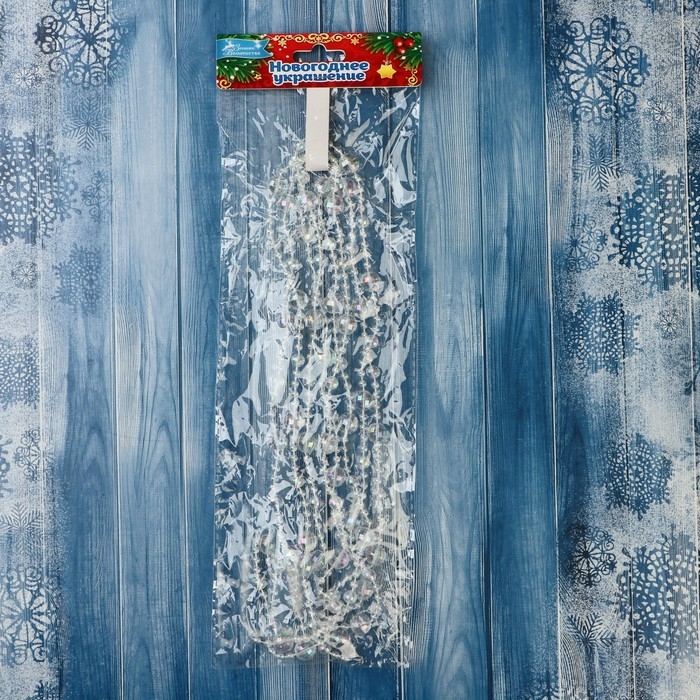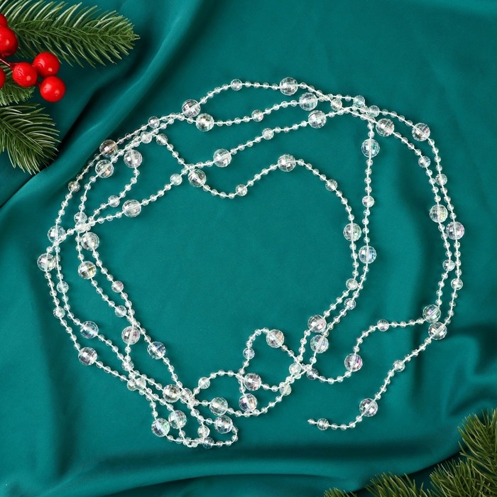 Бусы на ёлку 2,7 м d-10 мм "Льдинка" бусины грани, прозрачный перламутр
