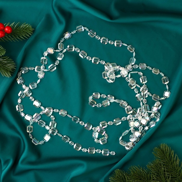 Бусы на ёлку 2,7 м 12 мм "Льдинка" кубики, прозрачный перламутр
