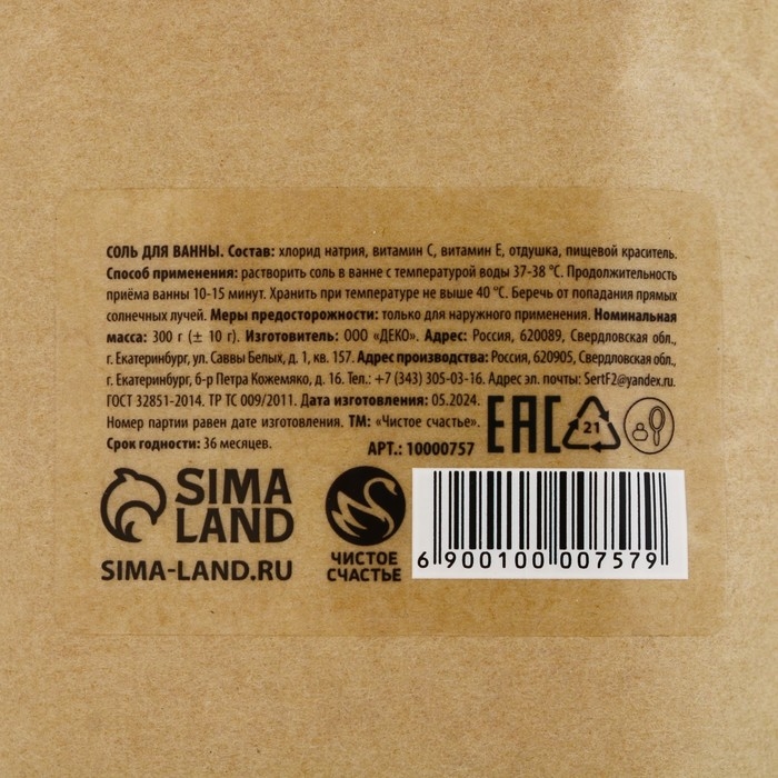 Соль для ванны, 300 г, аромат зимних ягод, Новый Год