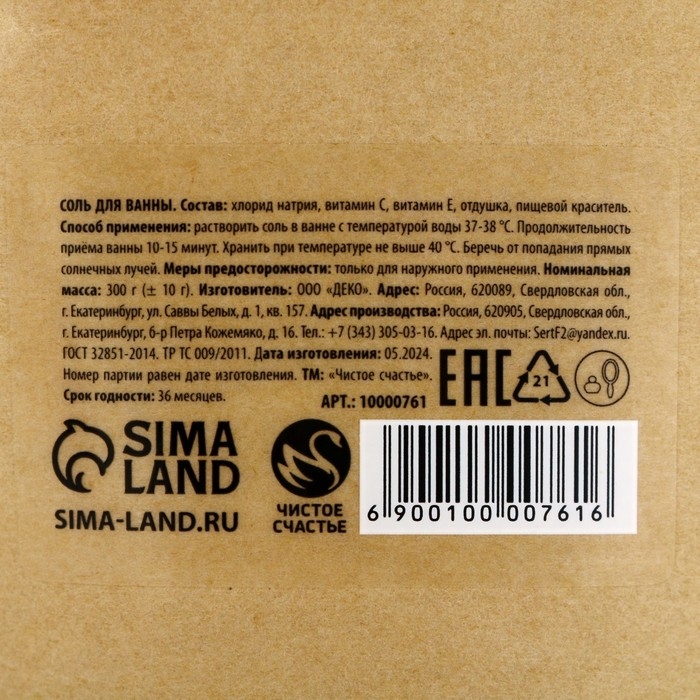 Соль для ванны расслабляющая , 300 г, аромат сливочной ванили, Новый Год