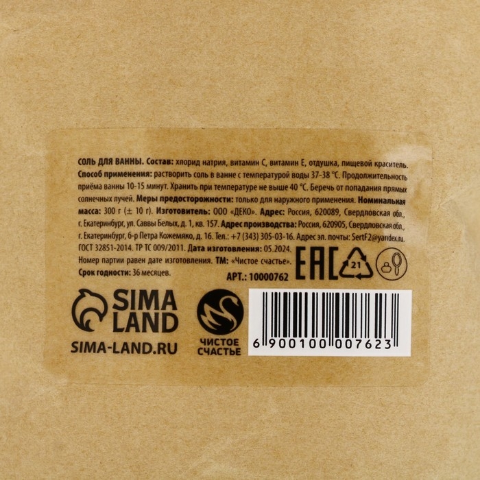 Соль для ванны, 300 г, аромат пряного апельсина, ЧИСТОЕ СЧАСТЬЕ