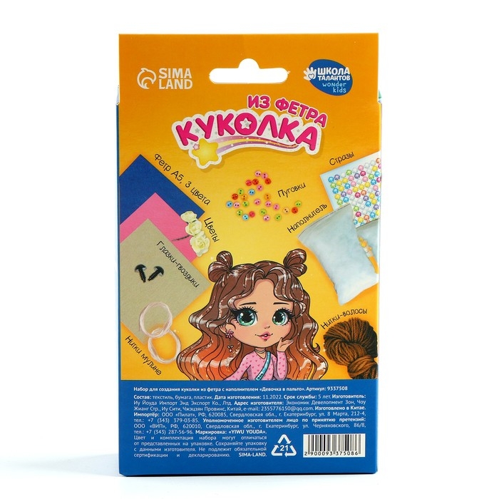 Набор для шитья. Кукла из фетра своими руками «Девочка в пальто» с наполнителем