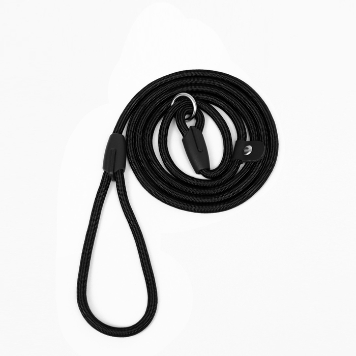 Поводок-удавка 150 см х 6 мм, полиэстер и натуральная кожа, чёрный