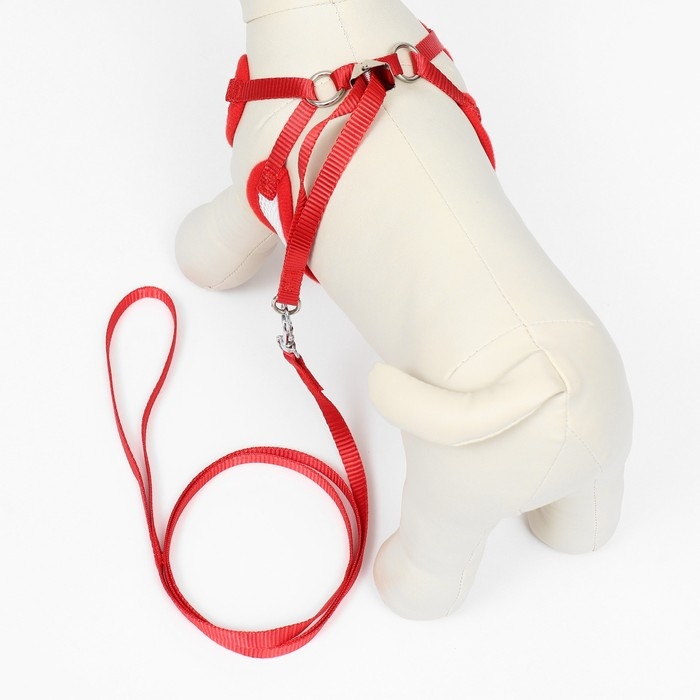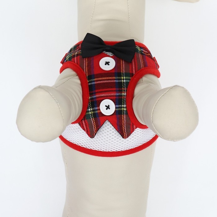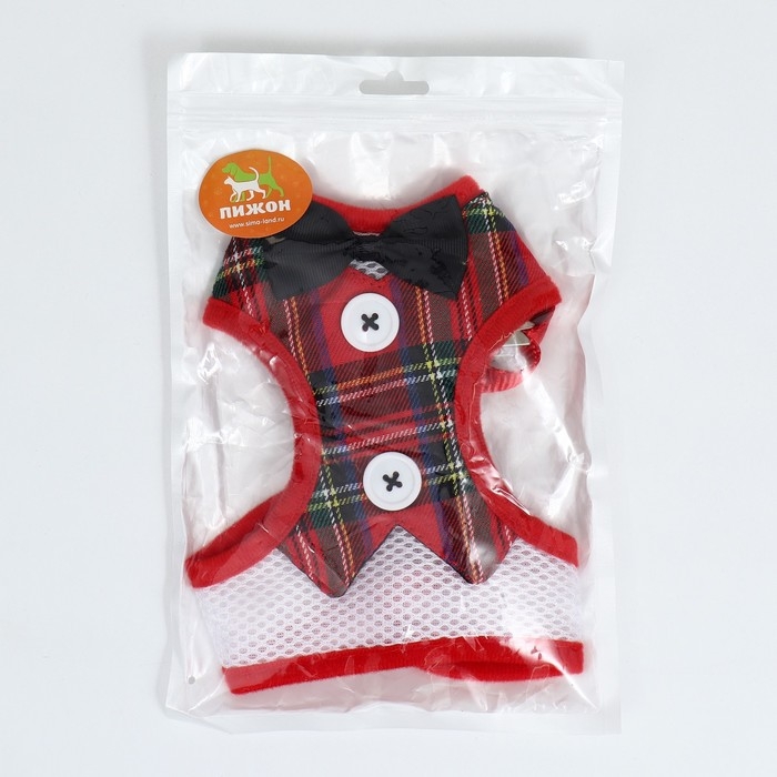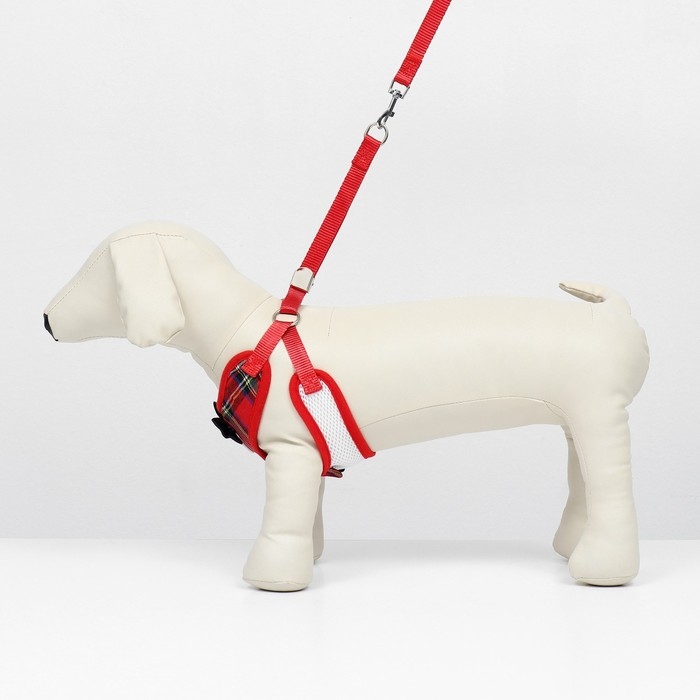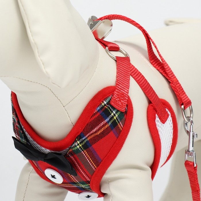 Комплект с мягкой шлейкой и бантиком "Клетка", размер M, поводок 120 x 1,5 см, ОГ 28-46 см