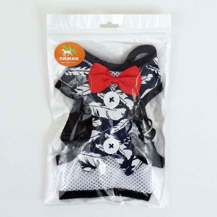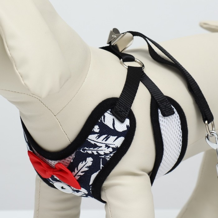 Комплект с мягкой шлейкой и бантиком "Перья", размер M, поводок 120 x 1,5 см, ОГ 28-46 см