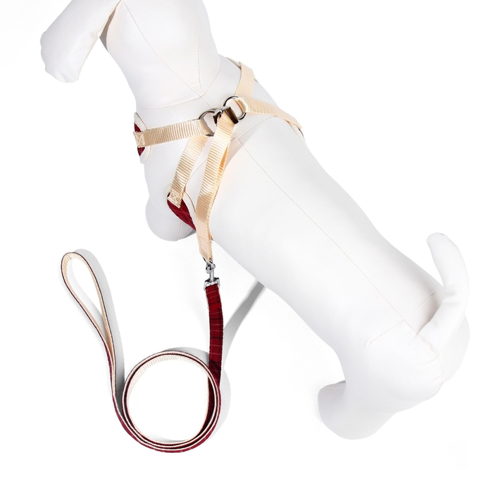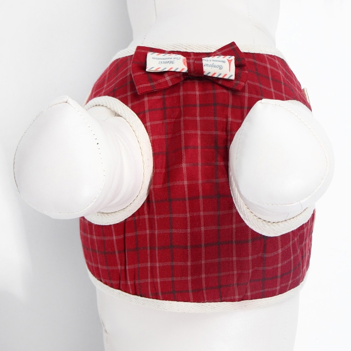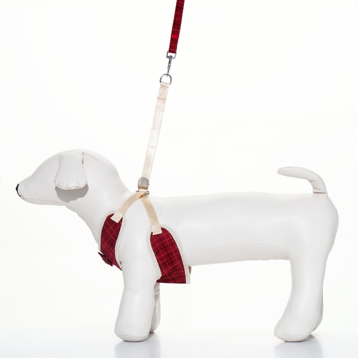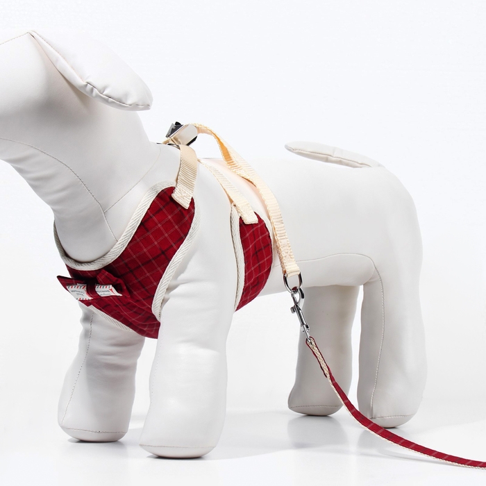 Комплект с мягкой шлейкой "Клетки", размер S, поводок, 120 х 1,5 см, ОГ 28-62 см, красный