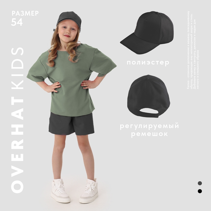 Кепка детская однотонная, цвет чёрный, р-р- 54