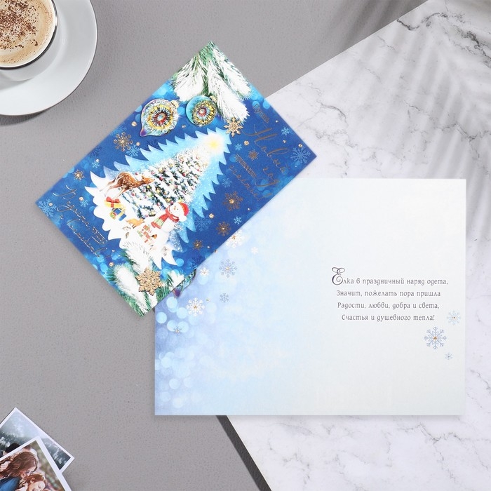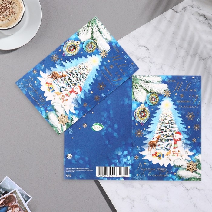 Открытка "Пусть Новый Год приносит счастье!" конгрев, тиснение, снеговик, 12,5х19,5 см
