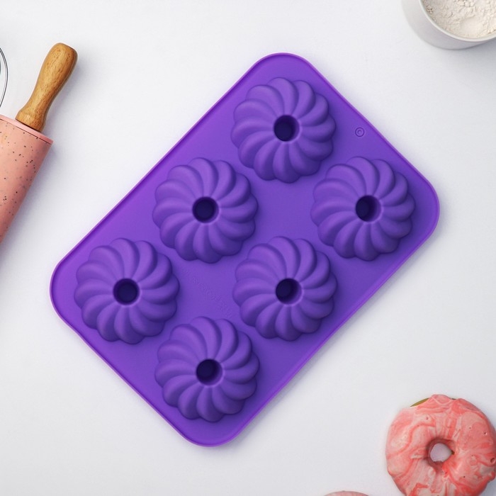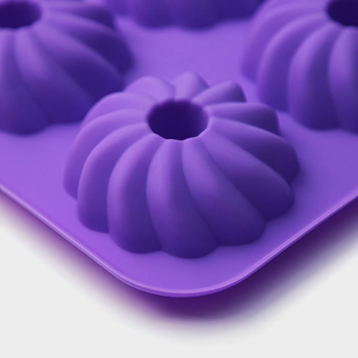 Форма для выпечки Доляна «Кекс», силикон, 26×18×3,5 см, 6 ячеек (7,5х7,5х2,5 см), цвет сиреневый