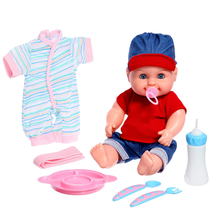 В наборе есть сменная одежда — шапочка, штанишки, кофточка.