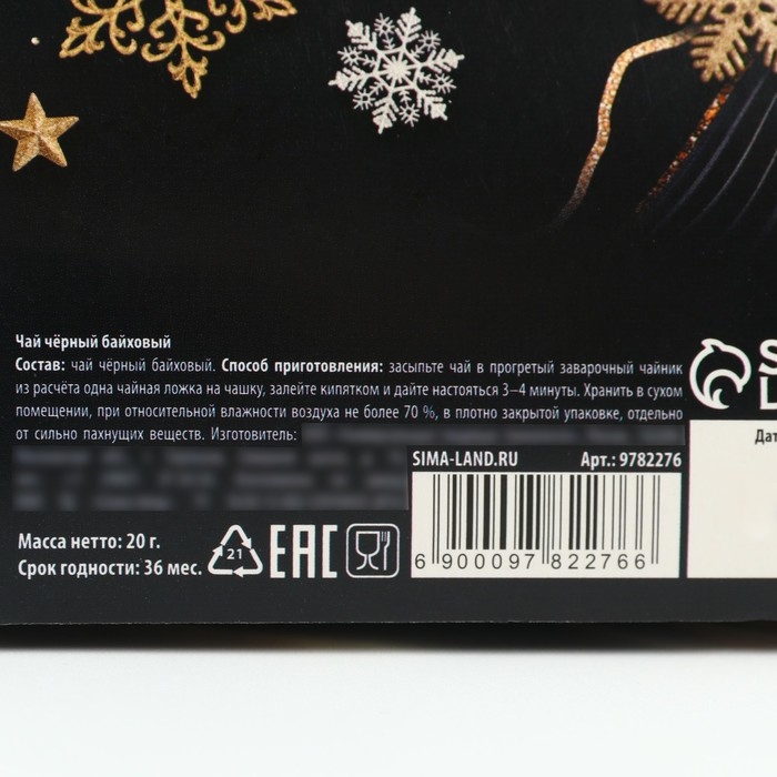Новый год! Чай чёрный в коробке «Золотого 2025 года», 20 г.