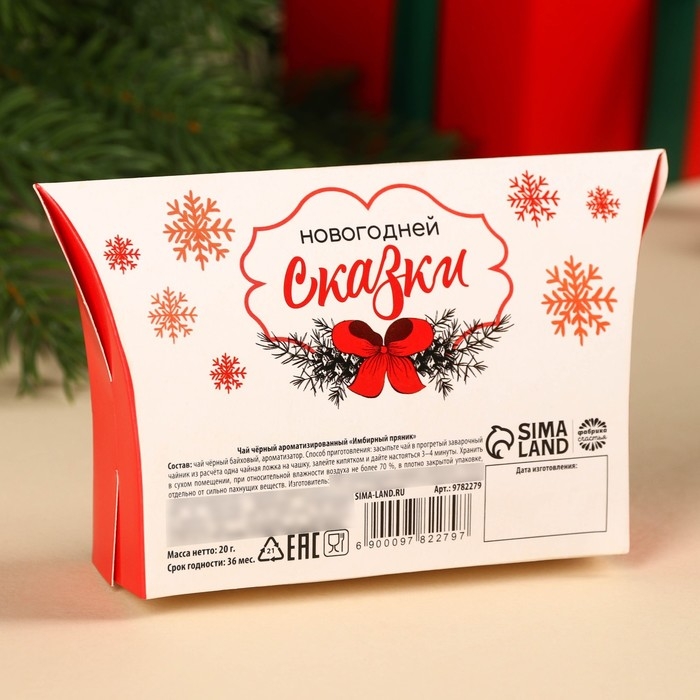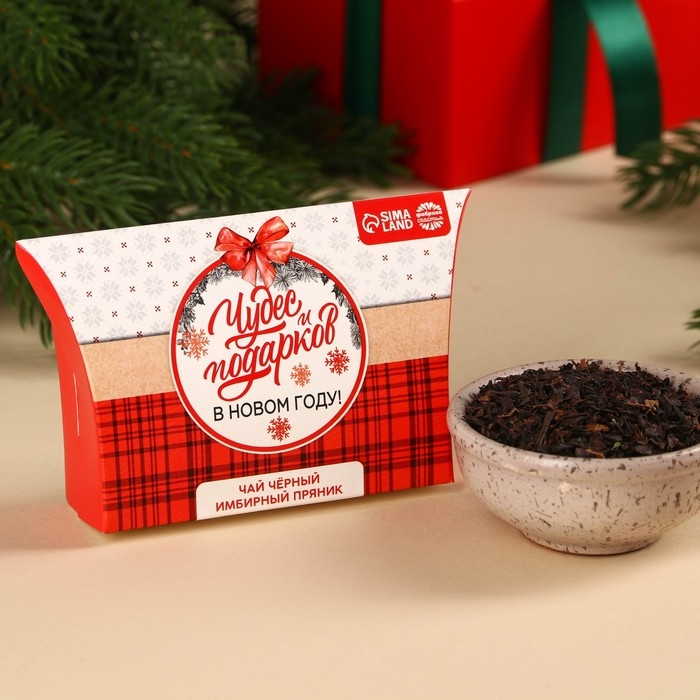 Новый год! Чай чёрный в коробке «Чудес и подарков», вкус: имбирный пряник, 20 г.