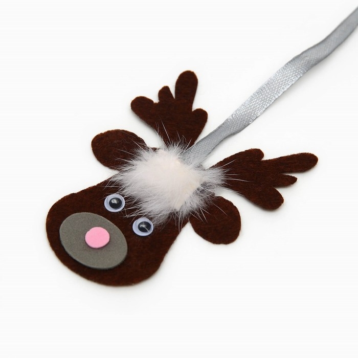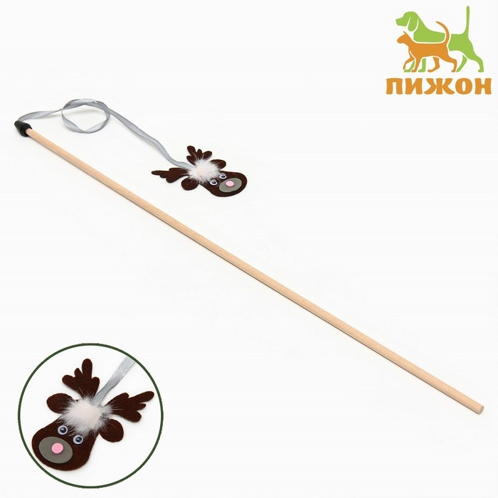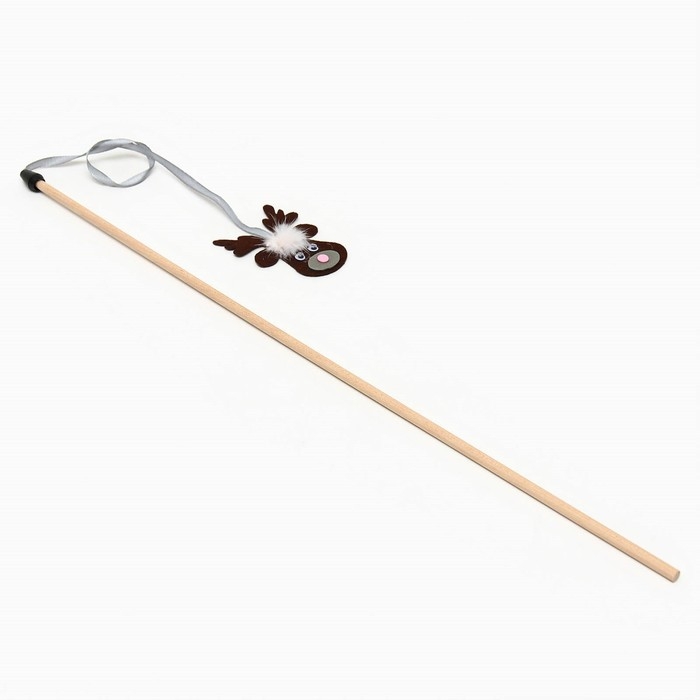 Новый год. Дразнилка-удочка "Олень" на деревянной палочке для кошек, коричневый