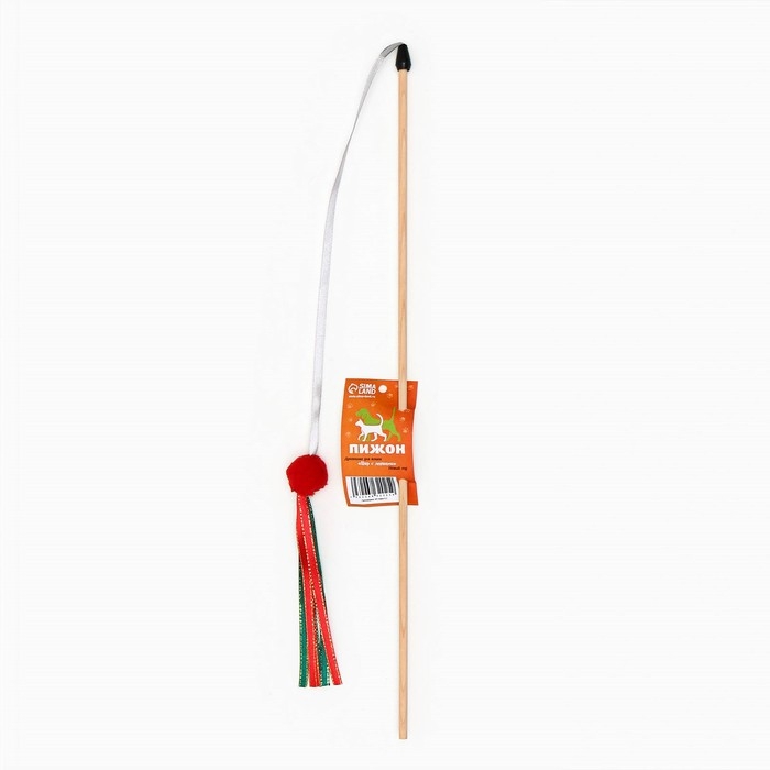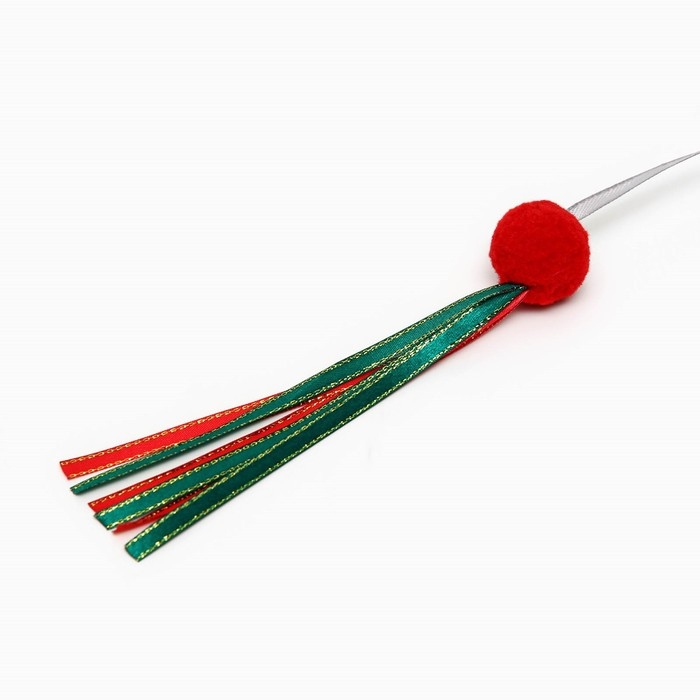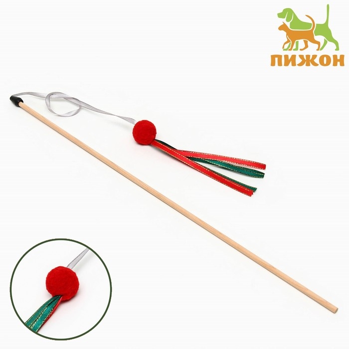 Новый год. Дразнилка-удочка "Шарик с лентами" на деревянной палочке для кошек, красный