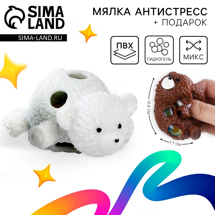 Мялка-антистресс «Медвежонок» + подарок, цвета МИКС, с гидрогелем