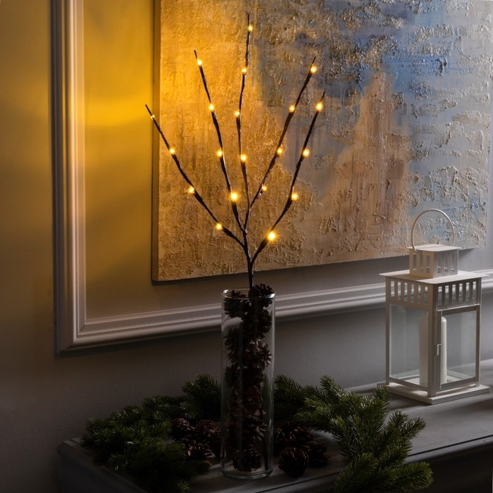 Светодиодная ветка 70 см, 20 LED, коричневая, AAх2 (не в комплекте), свечение тёплое белое