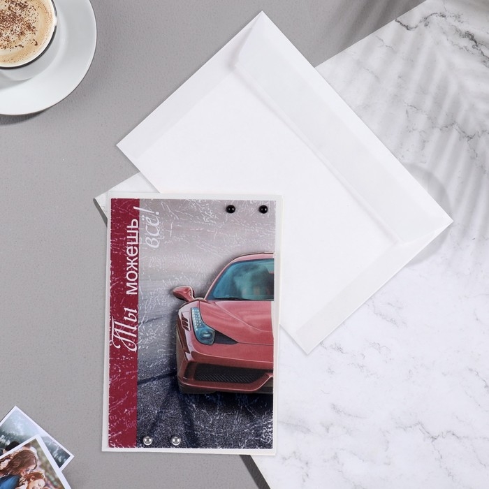 Открытка "Ты можешь всё!" ручная работа, автомобиль, 11,5х17 см