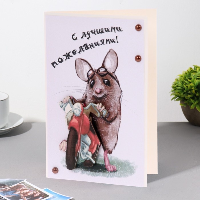 Открытка "С Днём Рождения!" ручная работа, байк, 11,5х17 см