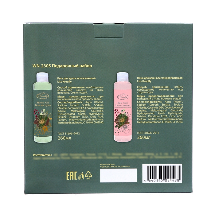 Подарочный набор косметики Liss Kroully: гель для душа, 260 мл + Пена для ванн, 260 мл
