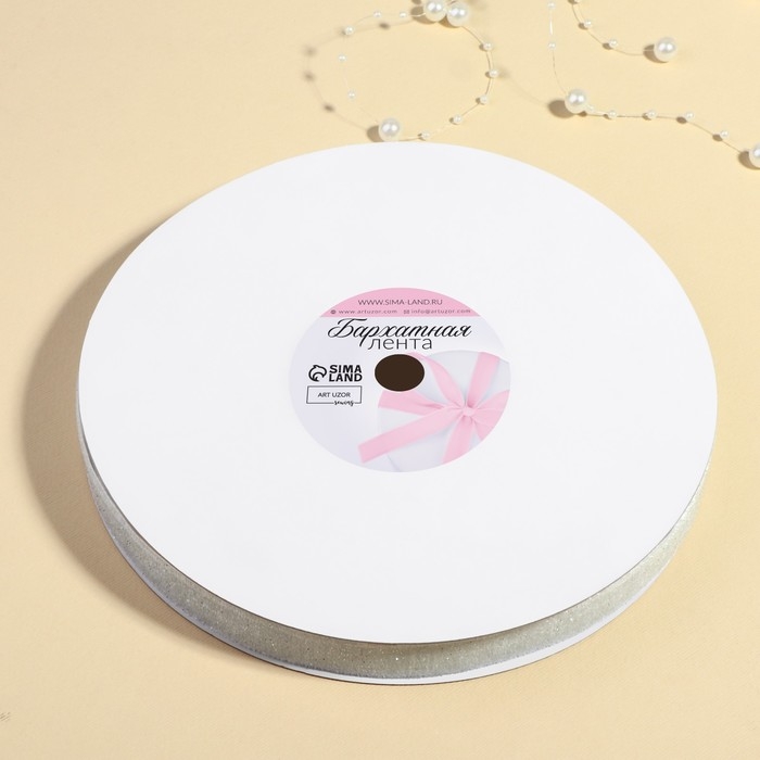 Лента бархатная, с серебряным люрексом, 15 мм, 18 ± 1 м, цвет белый №01
