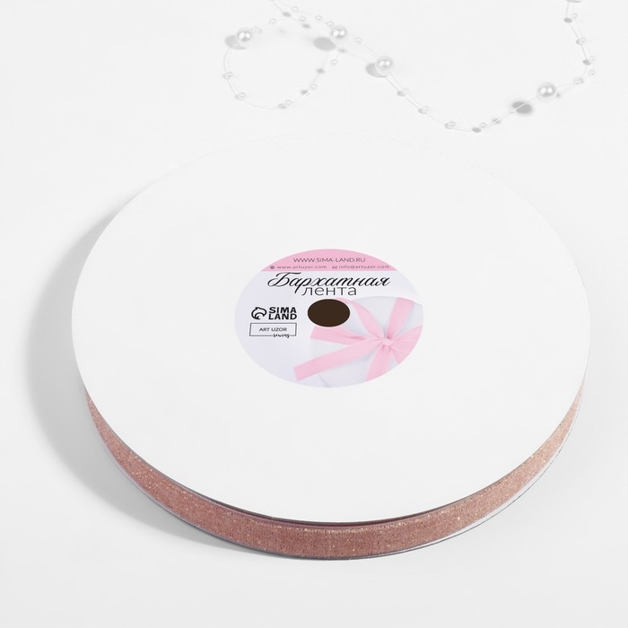 Лента бархатная, с золотым люрексом, 15 мм, 18 ± 1 м, цвет розовый №02