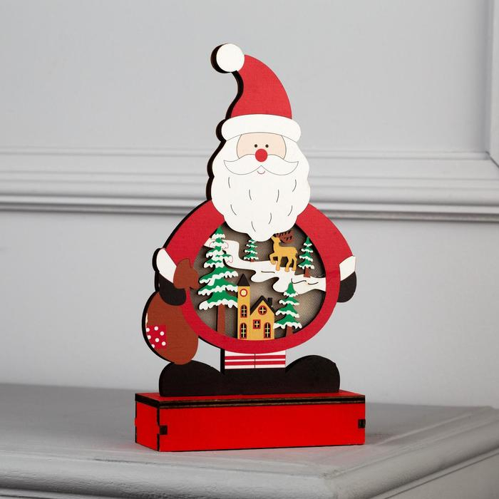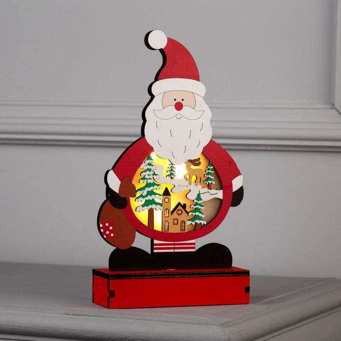 Светодиодная фигура «Дед Мороз» 14 × 20 × 2.5 см, дерево, батарейки LR1130х3 (в комплекте), свечение тёплое белое