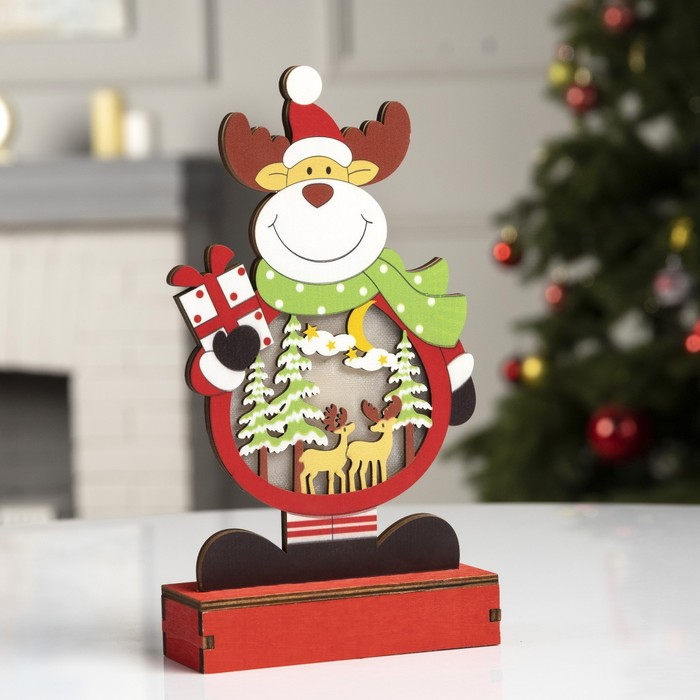 Светодиодная фигура «Олень» 13 × 24 × 5 см, дерево, батарейки ААх2 (не в комплекте), свечение тёплое белое