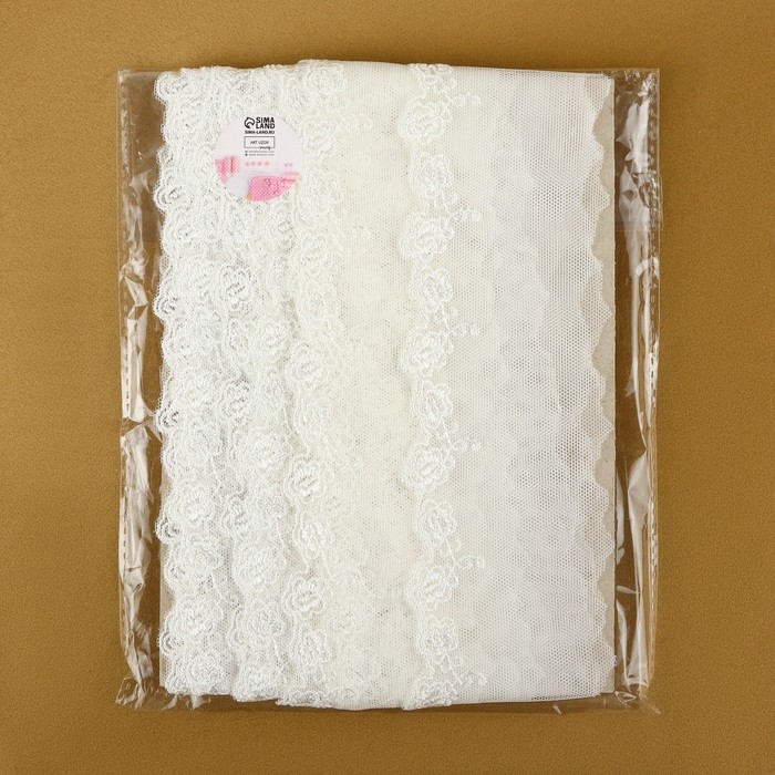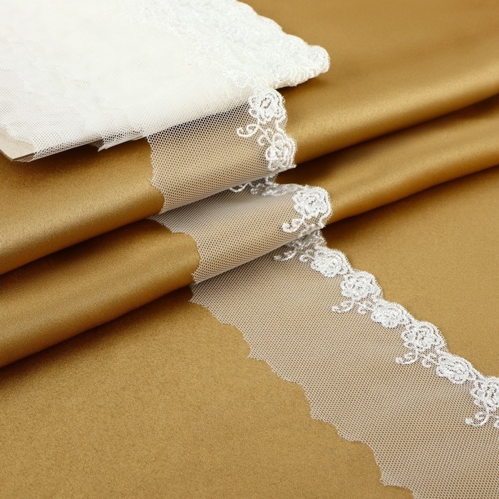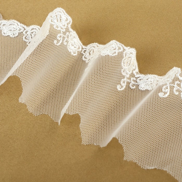 Кружево на сетке, 60 мм × 9 ± 0,5 м, цвет белый