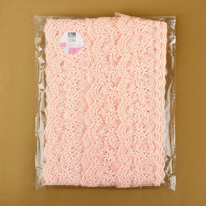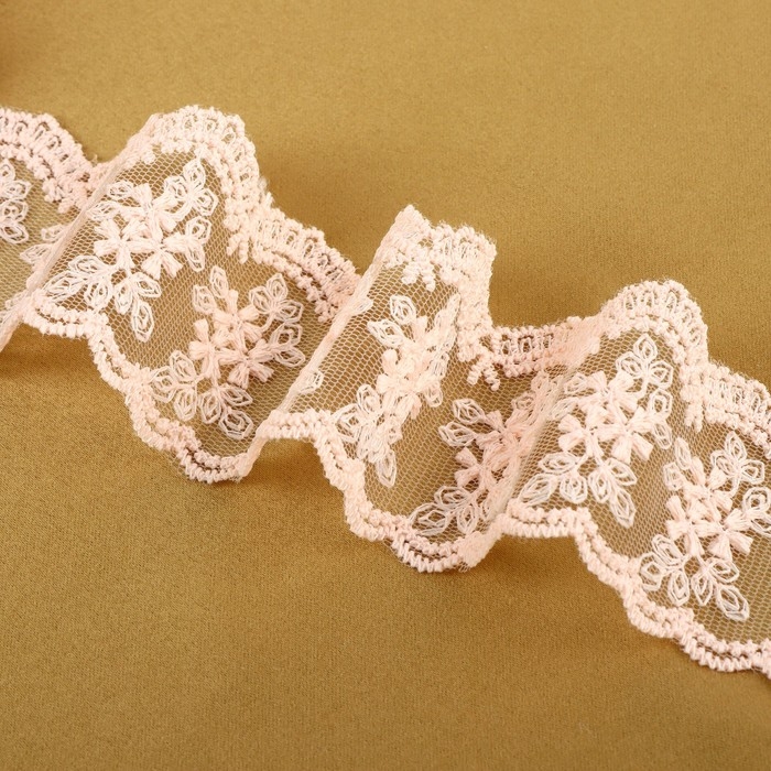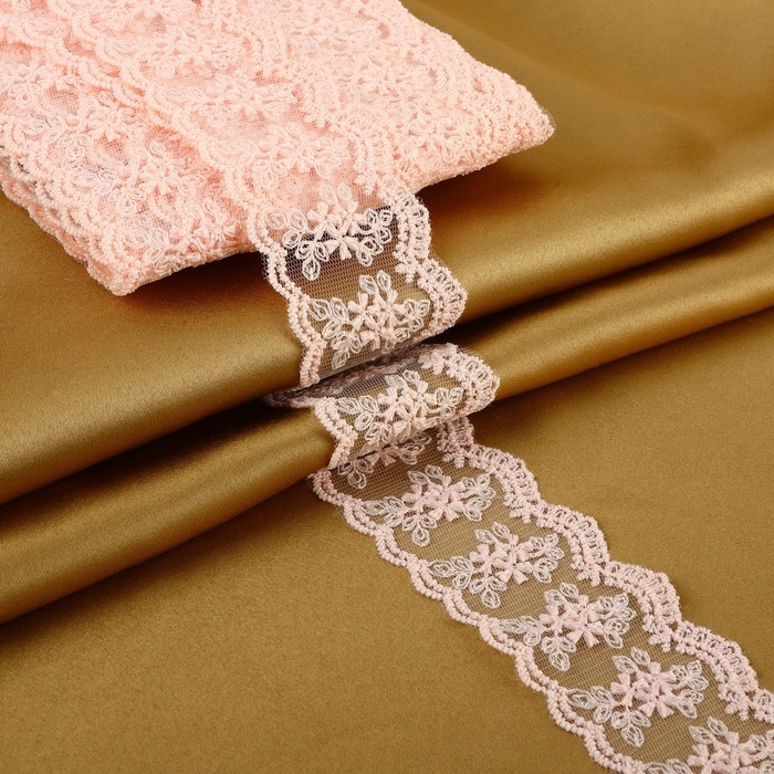 Кружево на сетке, 55 мм × 9 ± 0,5 м, цвет розовый